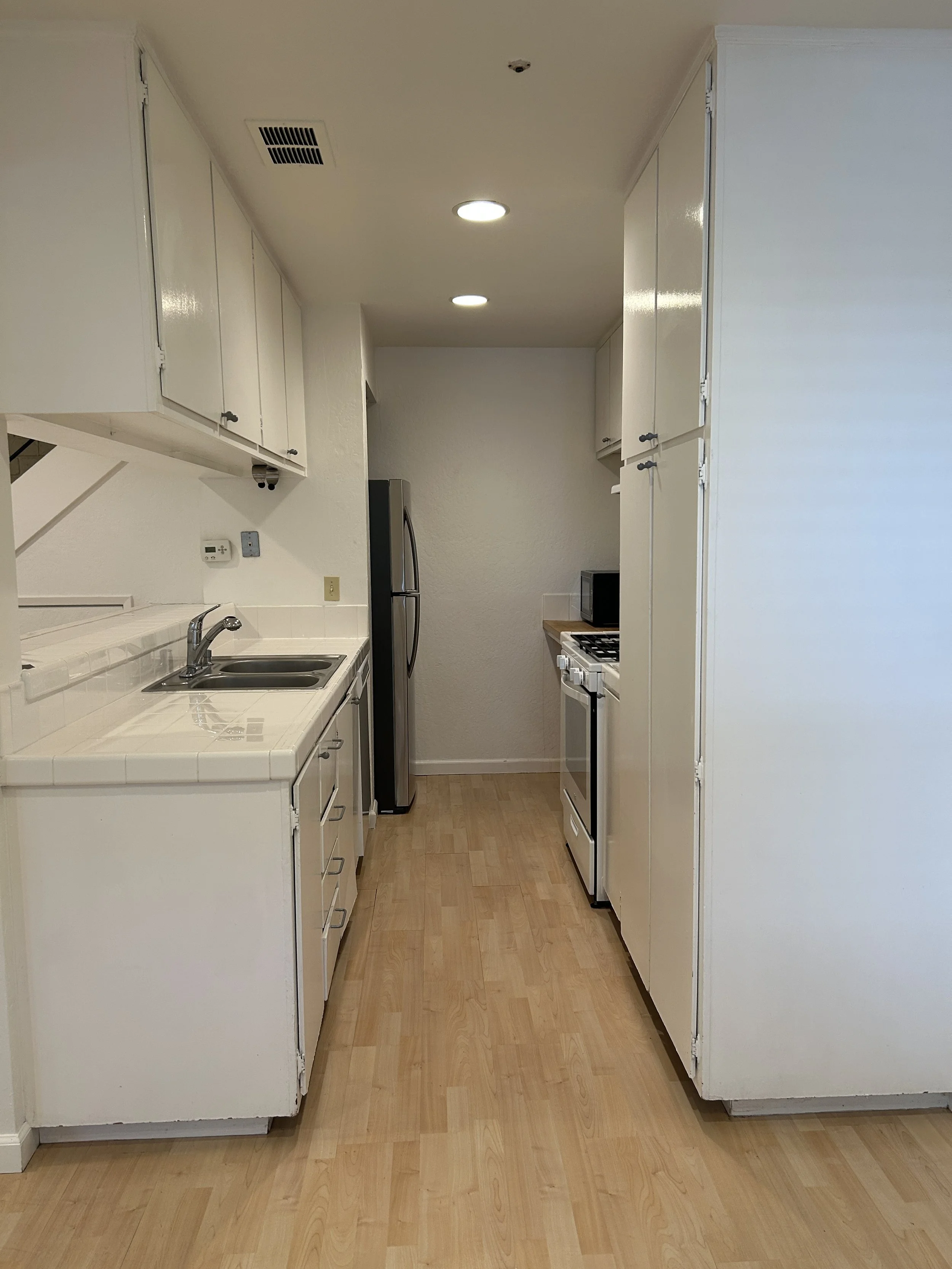 Located in the Villa Rosa community, this two bedroom and one bath end unit condo is available for immediate move in. This condo is conveniently located adjacent to the green space and just across the lawn to the sparkling pool. Featuring a kitchen with new refrigerator and gas range, two bedrooms (one with walk in closet) and updated bathroom, this home also offers a car port that fits two cars and plenty of guest parking nearby. Washer/dryer is located in the car port and rent includes hot water and garbage. Must have minimum credit score of 680, income of 2.5 times the rent and good rental history to qualify. One small dog or one cat allowed.